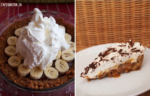 Υλικά Για την βάση 80 γρ βούτυρο 250 - 300 γρ μπισκότα digestive ή άλλα μπισκότα 2 κουταλιές της σούπας κακάο σε σκόνη κοσκινισμένο Για την καραμέλα 1/3 της κούπας βούτυρο 1/2 κούπα καστανή ζάχαρη 1 κονσέρβα ζαχαρούχο γάλα περίπου 390 γρ 3-4 μπανάνες 1 κούπα κρέμα γάλακτος 3 [...]