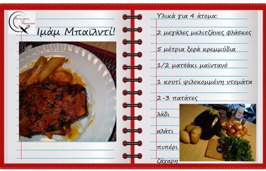 Μπορεί ο Ιμάμης να μπαϊλντισε στη θέα αυτού του λαδερού φαγητού...(εξ΄ου και το όνομά του), αλλά εσύ δε θα πάθεις τίποτα! Μισώ το τηγάνισμα! Εάν θέλεις να με "σκοτώσεις" πες μου να τηγανίσω πατάτες...Πώς να στο πω? Προτιμώ να κάτσω να σου φτιάξω παστίτσιο...αλλά πατάτες δεν τηγανίζω._ [...]