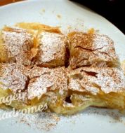 Υλικά 1 πακέτο φύλλα κρούστας 600 ml γάλα 2 αυγά 1 φλ. ζάχαρη 1 βανίλια 2 κ.σ. βούτυρο λιωμένο άχνη και κανέλα για πασπάλισμα Εκτέλεση Σουρώνουμε ένα ένα τα φύλλα και τα τοποθετούμε το ένα δίπλα στο άλλο σε βουτυρωμένο πυρέξ. [...]